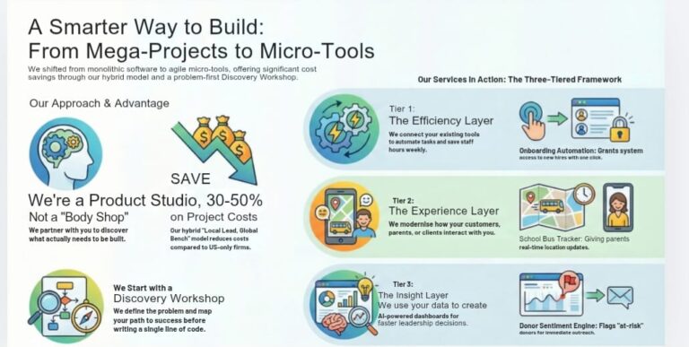 How We Start:The Discovery Workshop Before we quote, we listen. Every engagement begins with a Discovery Workshop(90 minutes to 2 days) to map your workflow, identify technical debt, and define what “success” looks like for your business.
